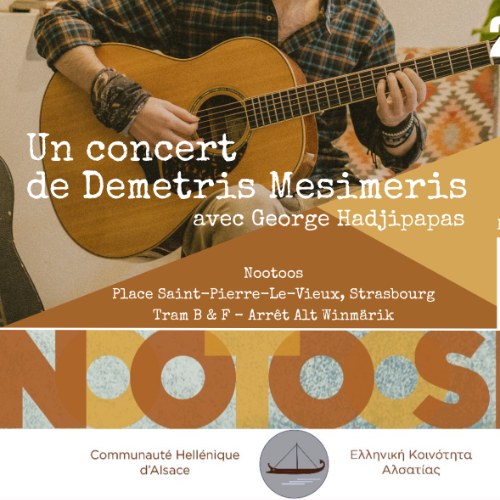 Ο Δημήτρης Μεσημέρης εμφανίζεται στο Στρασβούργο για πρώτη φορά. Συνοδευόμενος από τον πολυτάλαντο μουσικό Γιώργο Χατζηπαπά στο κλαρινέτο, το καβάλι και το μπουζούκι, παρουσιάζουν μια ξεχωριστή συναυλία με αγαπημένα, διαχρονικά κυπριακά και ελληνικά τραγούδια που έχουν παραμείνει ζωντανά στο πέρασμα των χρόνων. Το πρόγραμμα θα περιλαμβάνει επίσης πρωτότυπα τραγούδια του Δημήτρη Μεσημέρη, επιλεγμένα τόσο από τις πιο πρόσφατες όσο και από παλαιότερες κυκλοφορίες του, δημιουργώντας μια βραδιά που γεφυρώνει την προσωπική έκφραση με την κοινή μουσική κληρονομιά.
